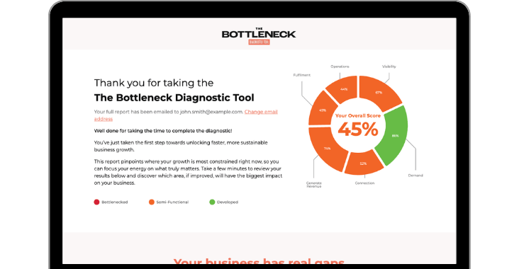 See which pillars are quietly holding your growth back. You will receive an overall score and a score for each bottleneck.